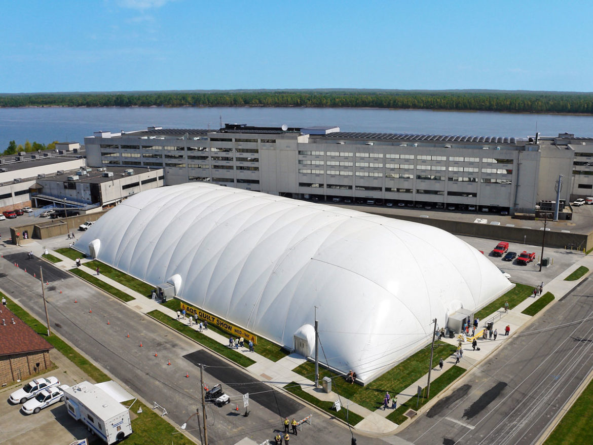 • Otherwise unable to provide enough open-span indoor event space to house 30,000+ vendors and spectators, the quick and cost-effective construction of Arizon’s air dome enabled the City of Paducah to host the American Quilt Society’s annual expo.