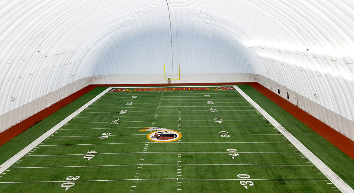 • The Redskins also have goal posts suspended from the dome, which allows for more floor space.