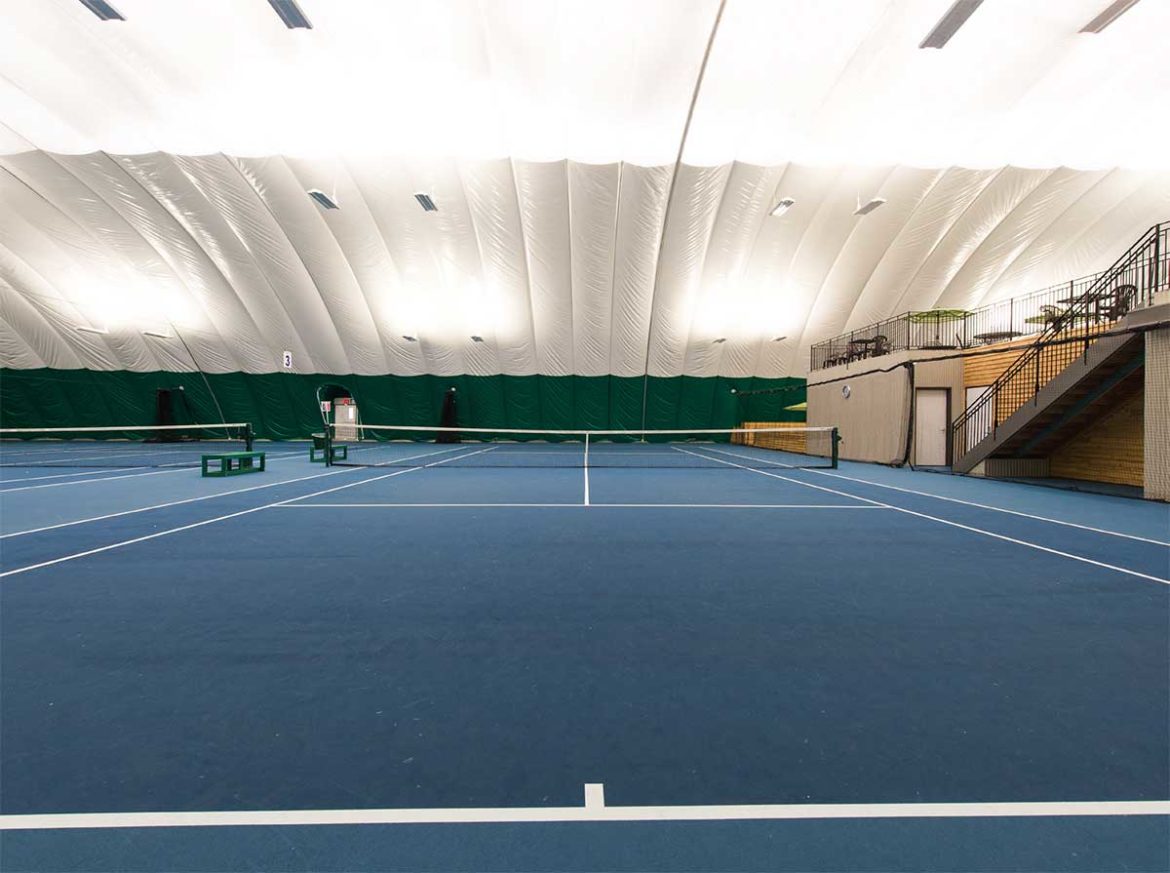 Location: Pontiac, MI Application: Tennis Size: 118’ x 348’ x 36’ (41,064 square feet) Features: Six Indoor Hard-courts Two-Level Interior Clubhouse Building Energy Efficient Skylight Feature